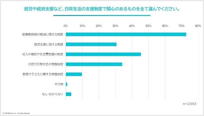 ・「医療費負担の軽減に関する制度に関心がある」という回答者は72.8%で、突出した結果。