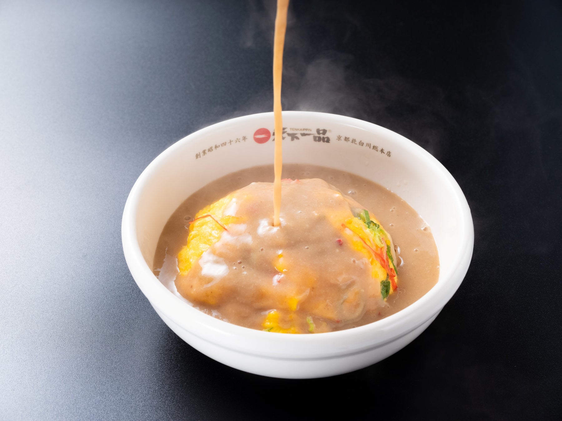 こってり天津飯は、天下一品のこってりスープをこよなく愛するお客様が、「天津飯にもこってりスープをかけてもらえませんか?」とオーダーしたことがきっかけ。