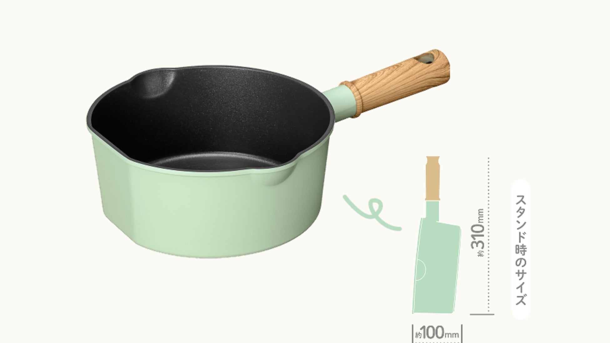 「コンロ横やコンロ奥に手軽に収納できる鍋やフライパンにニーズがある」と考え、本体が自立することに着目して設計しました。