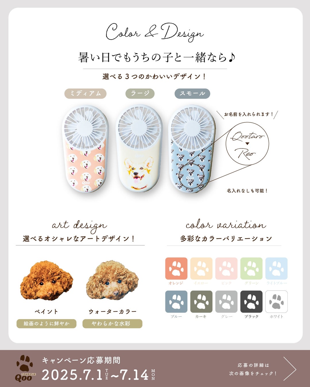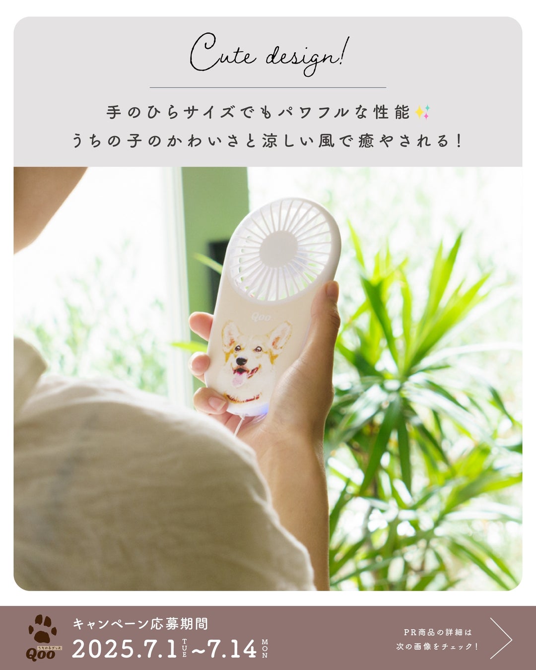 ペットの写真をプロのデザイナーがオリジナルのうちの子グッズに仕上げるEコマースプラットフォーム「うちの子グッズQoo」( https://uchinoko-goods.jp/ )は、『うちの子似顔絵ハンディファン』の感情的価値と魅力を共に発信してくださるPRモデル(モニター)を、2025年7月1日より募集開始いたします。