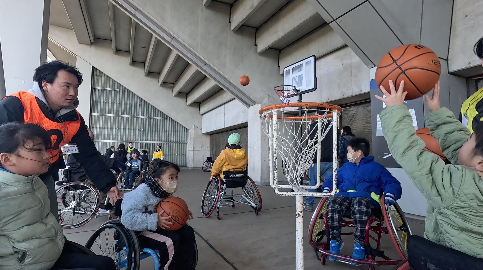 車いすとボールを同時に扱うことに苦戦する場面も見られましたが、体験を重ねるうちに少しずつ「できた!」が増えていき、シュートが決まった時には喜びの声とともにハイタッチする場面も多く見られました。