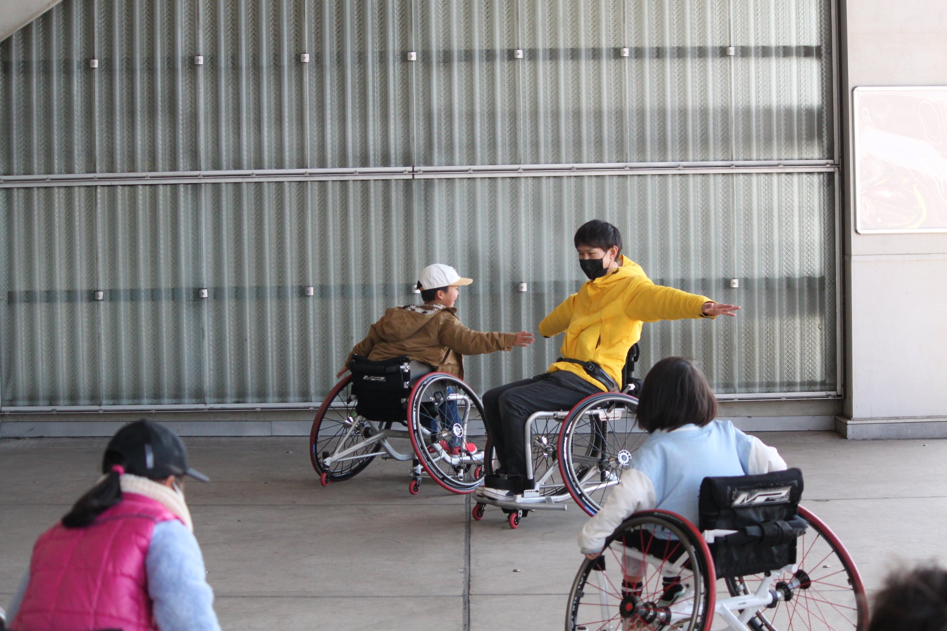 中には、一度体験した後に「もう1回やりたい!」と、何度もリピートして参加する子どもたちの姿も見られ、車いすに乗る楽しさを存分に感じてもらえる時間となりました。