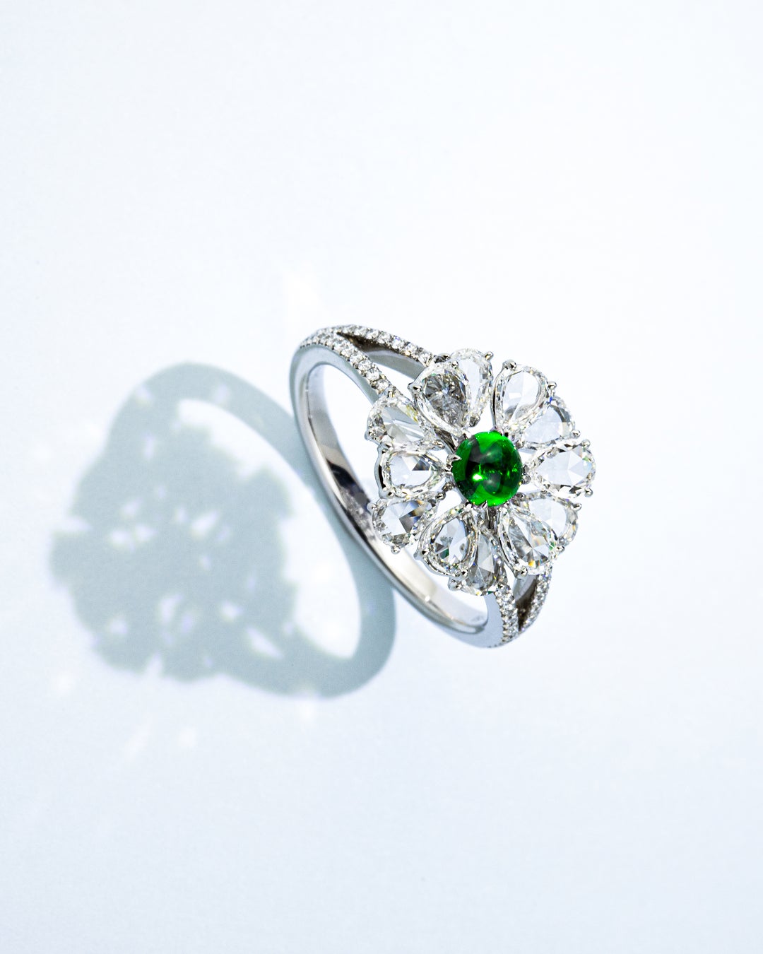 一点物は、宝石の「輝き」「透明感」「色合い」「形」といった要素が明らかに異なる魅力を持つものを、選び抜いた上で、それぞれの石に最適なデザインへ導くプロセスから生まれます。