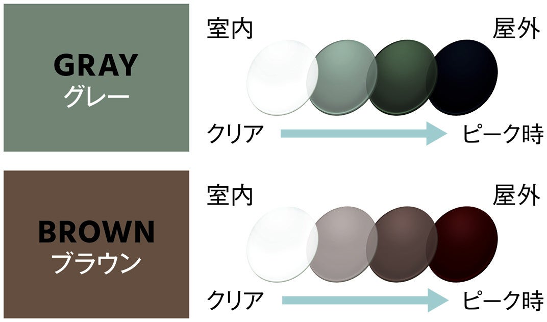 「ルティーナ フォト2」の最大の特長は、40℃以上の高温条件下でも、調光機能により色が濃く変化するという点です。カラーは、グレーとブラウンの2色となっており、40℃の高温時のダークニングでは、従来の「ルティーナ フォト」に比べて約18%(※1)も濃度が濃くなります。