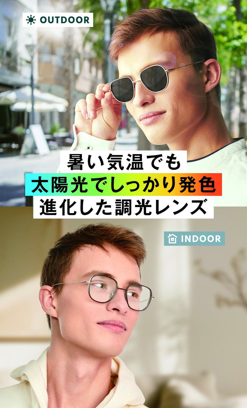 1.暑い気温の中でもしっかり発色する、どんな気温でも便利に使える調光レンズ