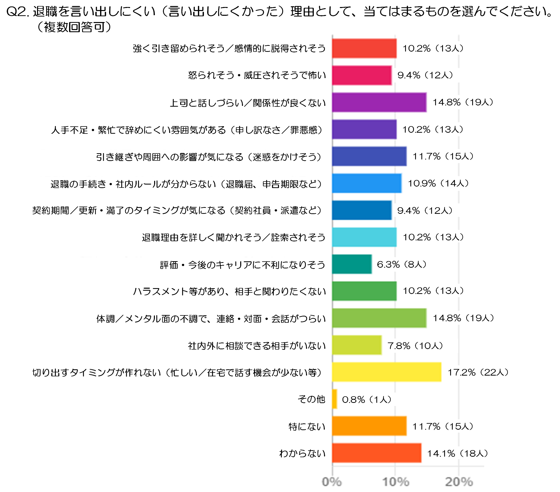 Q2.退職を言い出しにくい(言い出しにくかった)理由として、当てはまるものを選んでください。※Q1で「直近で『退職したい』と思ったことはない」以外を回答した人が対象(複数回答可)