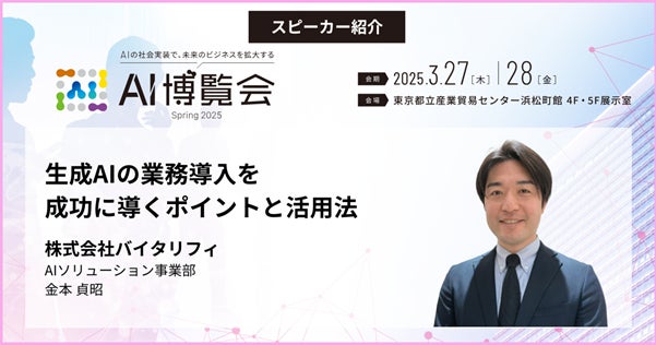 バイタリフィ、2025年3月27日~28日開催の「AI博覧会 Spring 2025」に出展