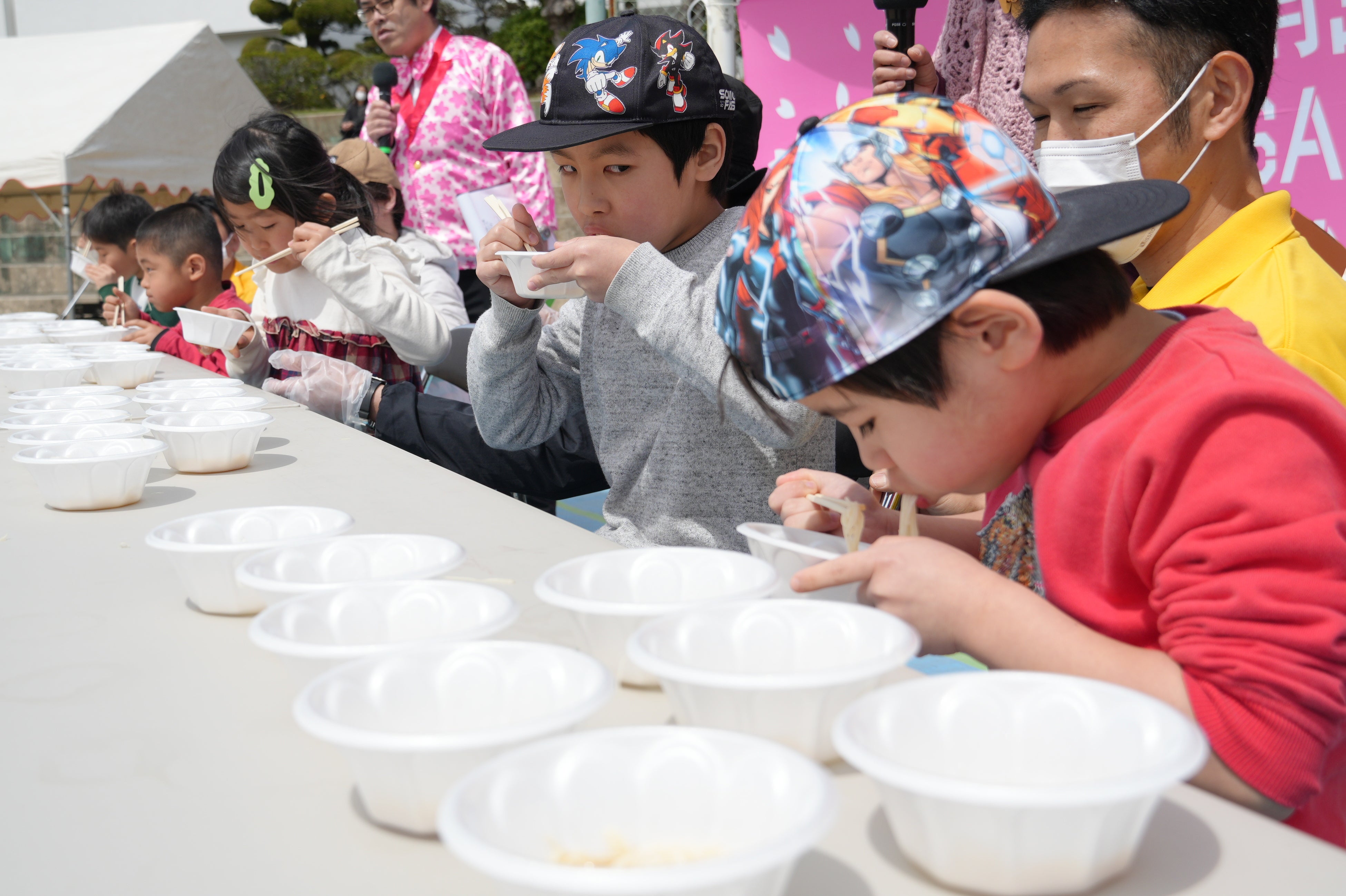 南島原市桜まつりでは、市内菓子店の出店や特産品販売、わんこそうめん大会など、地域の食や文化を楽しめるイベントを開催します。