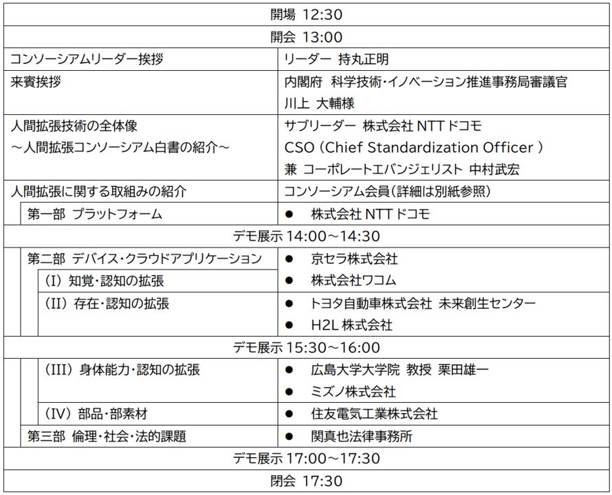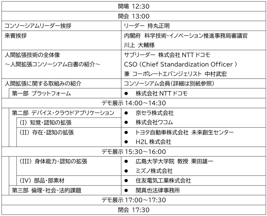 コンソーシアムリーダー、会員などによる講演と、会員によるデモ展示を行います(講演はオンラインで聴講可能)。講演では、コンソーシアムが発行した人間拡張コンソーシアム白書の内容をベースに人間拡張のユースケース、技術を俯瞰するほか、各会員の具体的な取組みを紹介します。デモ展示では、実際の人間拡張技術を来場者が体験できる、インタラクティブな展示を実施します。講演・デモ展示の詳細は別紙をご覧下さい。