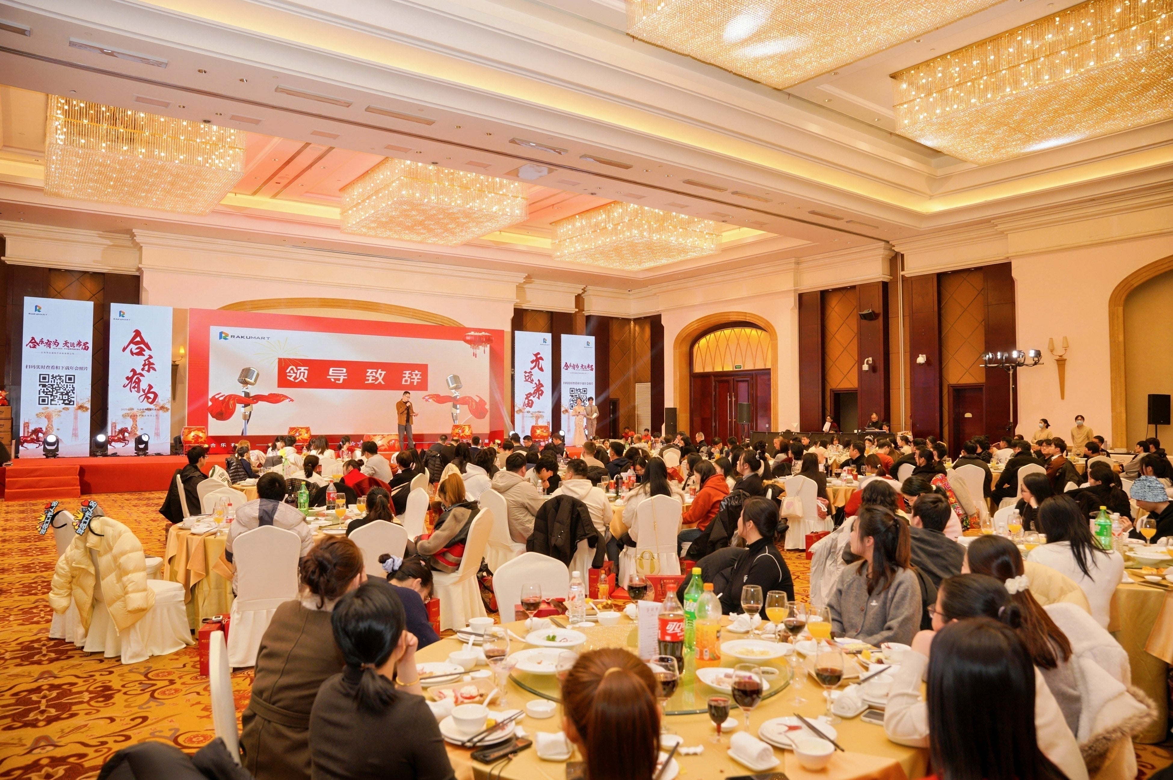 中国輸入代行サービスを展開するRAKUMART株式会社(本社:大阪市浪速区、日本代表取締役 大舘 一夫、以下「RAKUMART(ラクマート)」)は、2026年2月7日(土)、中国・浙江省義烏市の「幸福湖国際会議中心(Yourworld International Conference Centre)」において「RAKUMART 2025年度 年末総会・表彰式」を盛大に開催しました。14万㎡の庭園と64万㎡の湖面を有する五つ星リゾート型会議施設に、日中4拠点およびヨーロッパ拠点から全社員が集結。2025年度の事業成果の総括と2026年度の戦略方針の共有、ならびに全9部門にわたる優秀社員・チームの表彰を実施しました。