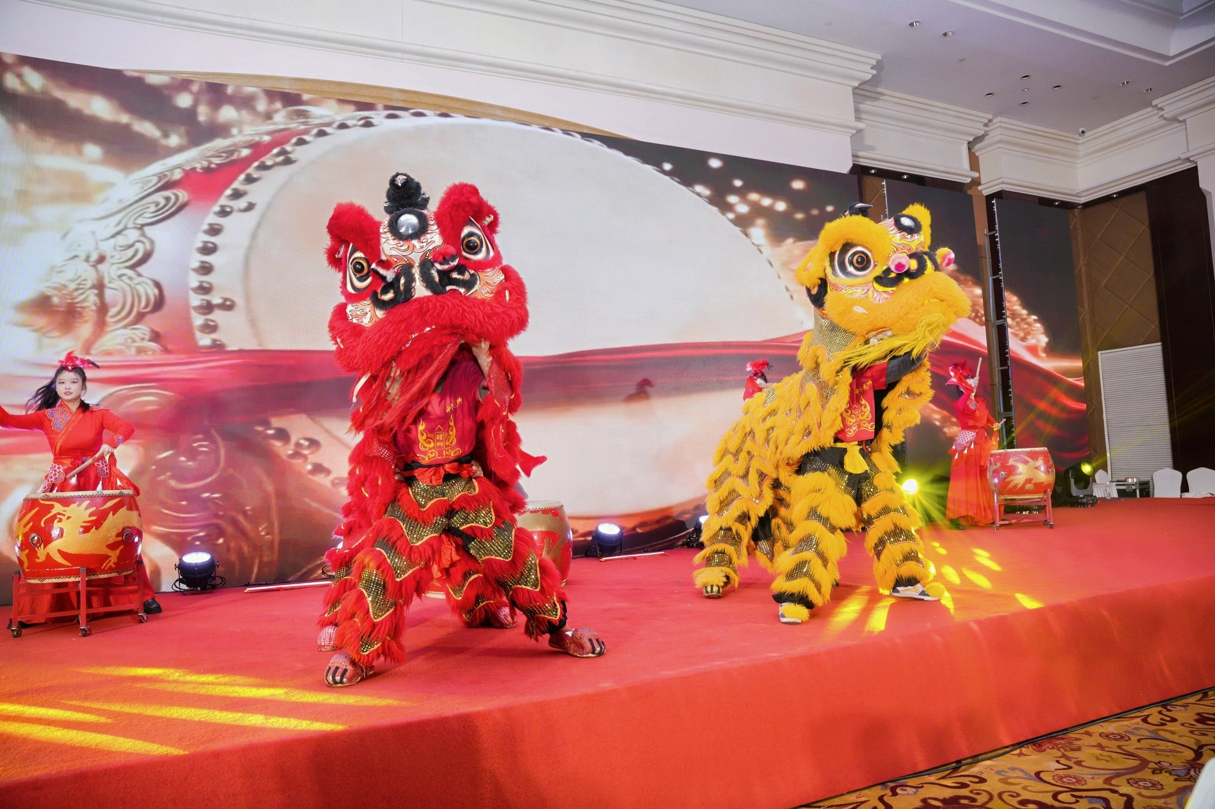 式の冒頭、躍動感あふれる獅子舞の演舞が会場を彩り、盛典の幕が上がりました。