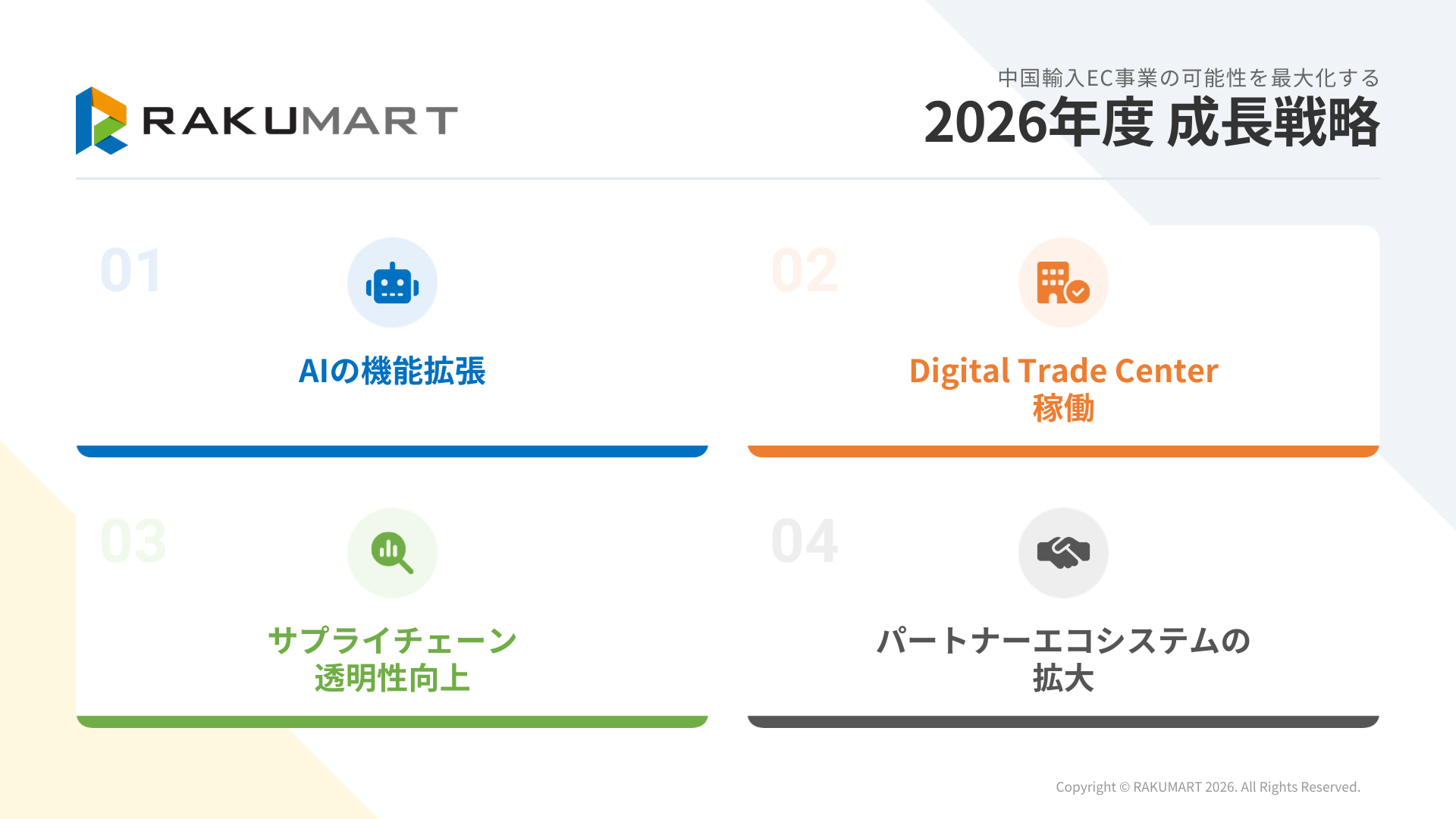 2026年度、RAKUMARTは以下の4領域に重点的に取り組みます。