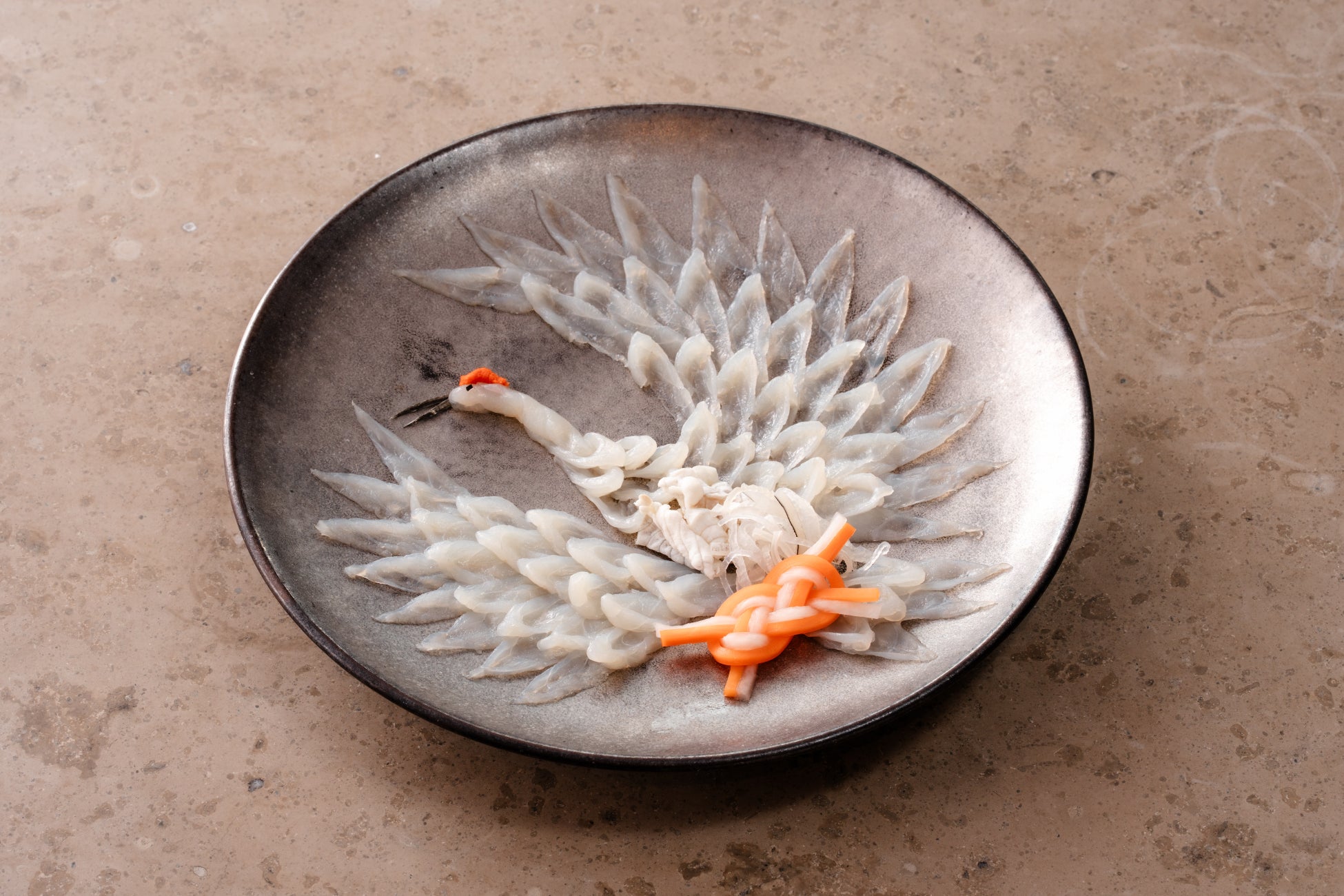 祝いの席にふさわしい鶴盛のとらふく刺は「福」に通じる縁起の良い食として大切な方への思いをかたちにする一皿です