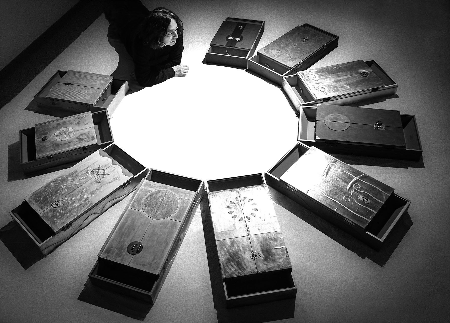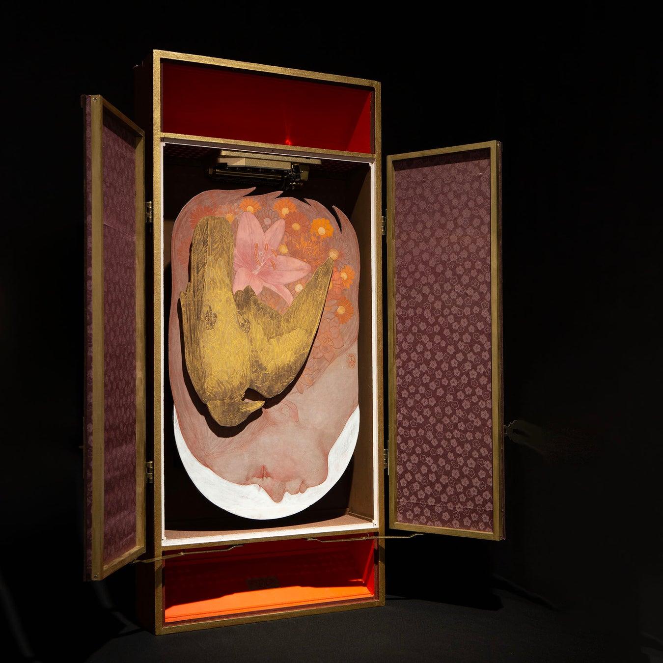 日本画の枠組みを超え、卓越した技術と構想力によって生み出された作品群と、その中に施された静かに奏でられる繊細な音の仕掛け、また、作品展示にとどまらず作家自身が手がける展示空間の構成も本展の大きな見どころです。ぜひご注目ください。