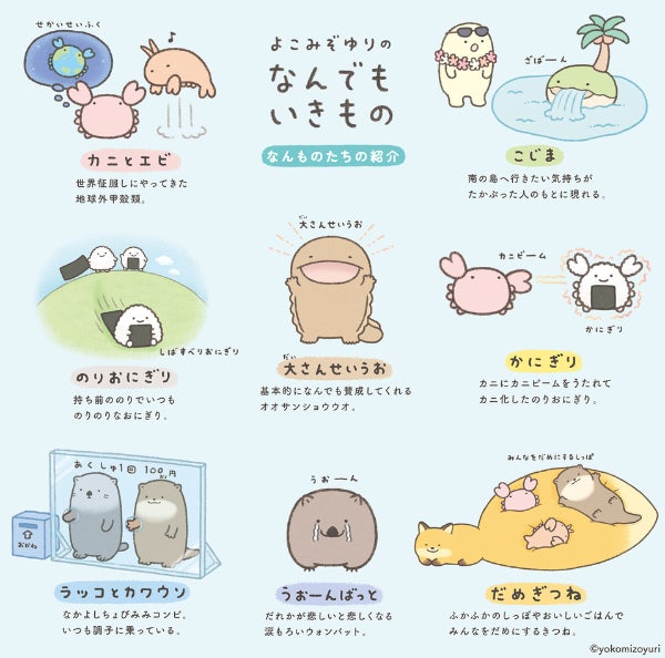 「なんでもいきもの」は、人気イラストレーターよこみぞゆりさんによる新しいオリジナルキャラクターです。