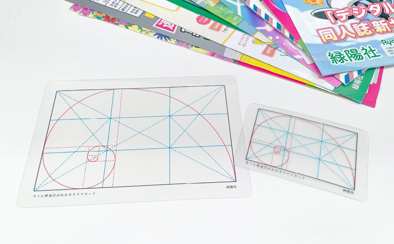 「最も調和のとれた美しい比率」とされる黄金比をイラストや原稿にかざして手軽に確認できるクリアカード。印刷所がお届けするクリエイター向けツールのオンライン販売が2026年4月9日(木)より始まります。