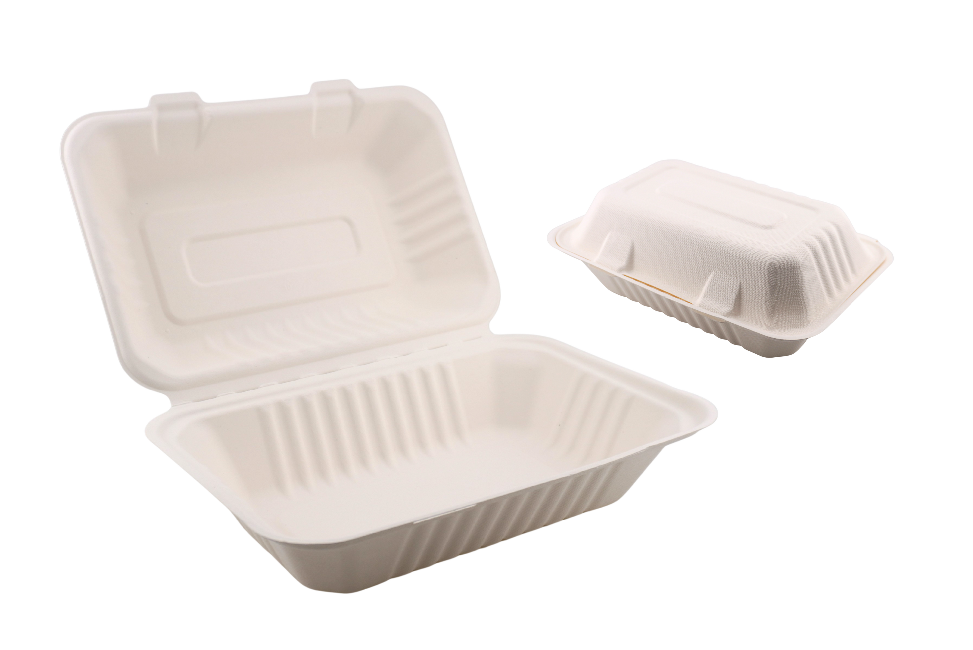 サトウキビ搾りかす(バガス)を原料とした生分解性モールド容器。約4か月で自然分解される環境性能に加え、PFAS(有機フッ素化合物)を一切含まない安全設計が特長です。非木材資源の活用により森林保全にも貢献し、プラスチック代替として利用可能。98℃の沸騰水(30分)や55℃の食用油(30分)にも耐える高い耐久性を備え、電子レンジ加熱にも対応します。