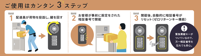 施錠方式: ダイヤル式(宅配ボックス:ゼロリターンキー機能付き)