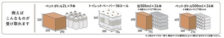 総容量123Lの大容量設計。ポスト部分はもちろん、上段・下段の2つの宅配ボックスが搭載されているので、複数の荷物を同時に受け取ることが可能です。2Lペットボトル9本入りのケースや、トイレットペーパー18ロール、120サイズまでの荷物に対応します。