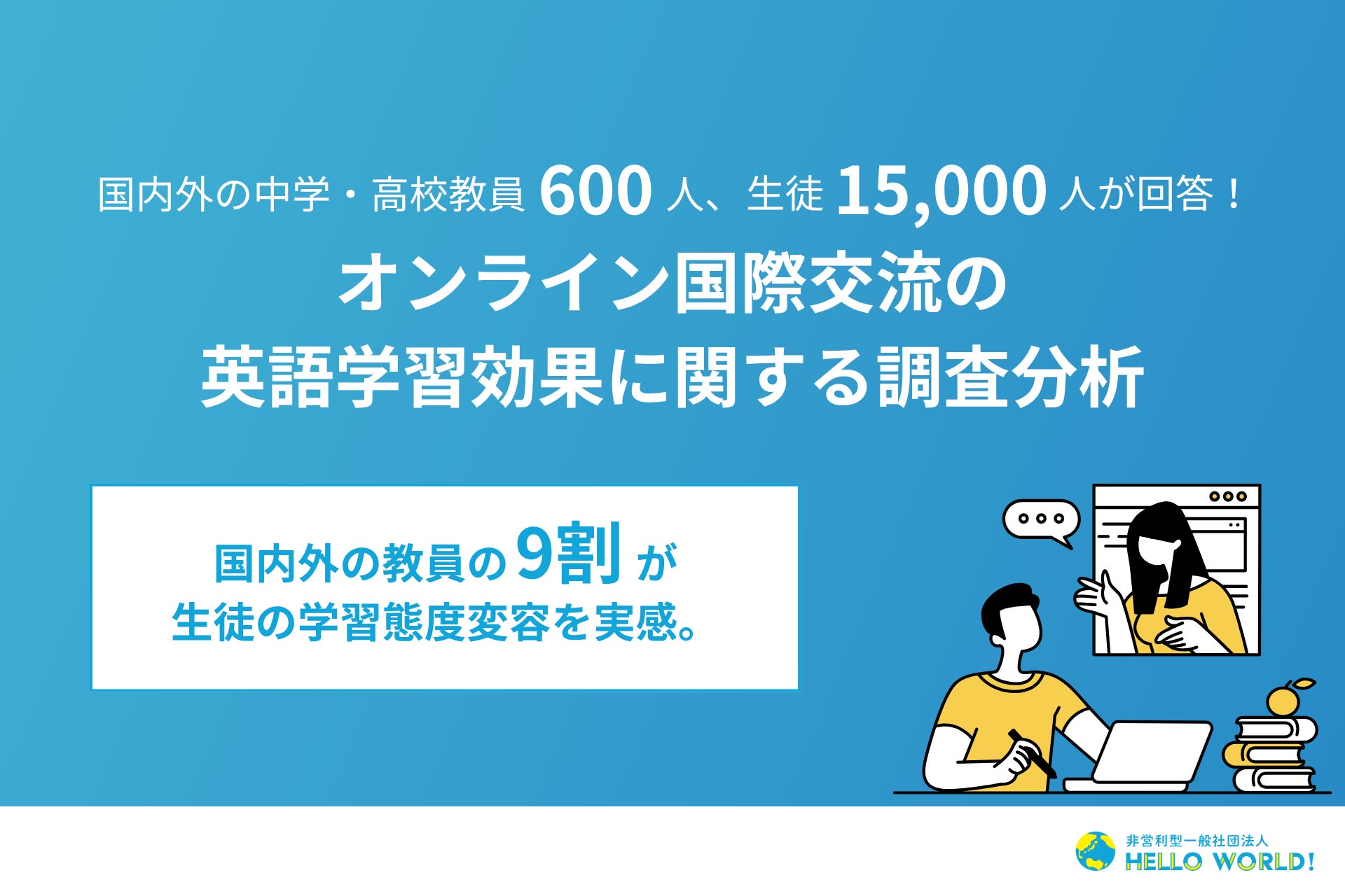 国際交流を起点に多様性あふれる社会の実現を目指す一般社団法人HelloWorld(ハローワールド、沖縄県沖縄市)は、国際交流や多文化理解等に関する調査・研究を推進するため、IntEx(*)研究所を設立しています。この度、連携先であるHelloWorld株式会社(本社:沖縄県沖縄市、Co-CEO野中光、冨田啓輔)が「英語の授業内でのオンライン国際交流が生徒の学習効果・意欲に与える影響について」の調査を実施し、日本国内の教員282名、日本の生徒13,059名、海外の教員315名、海外の生徒2,345名から回答を得ました。IntEx研究所が独自にその内容を分析しましたので、結果を公表します。