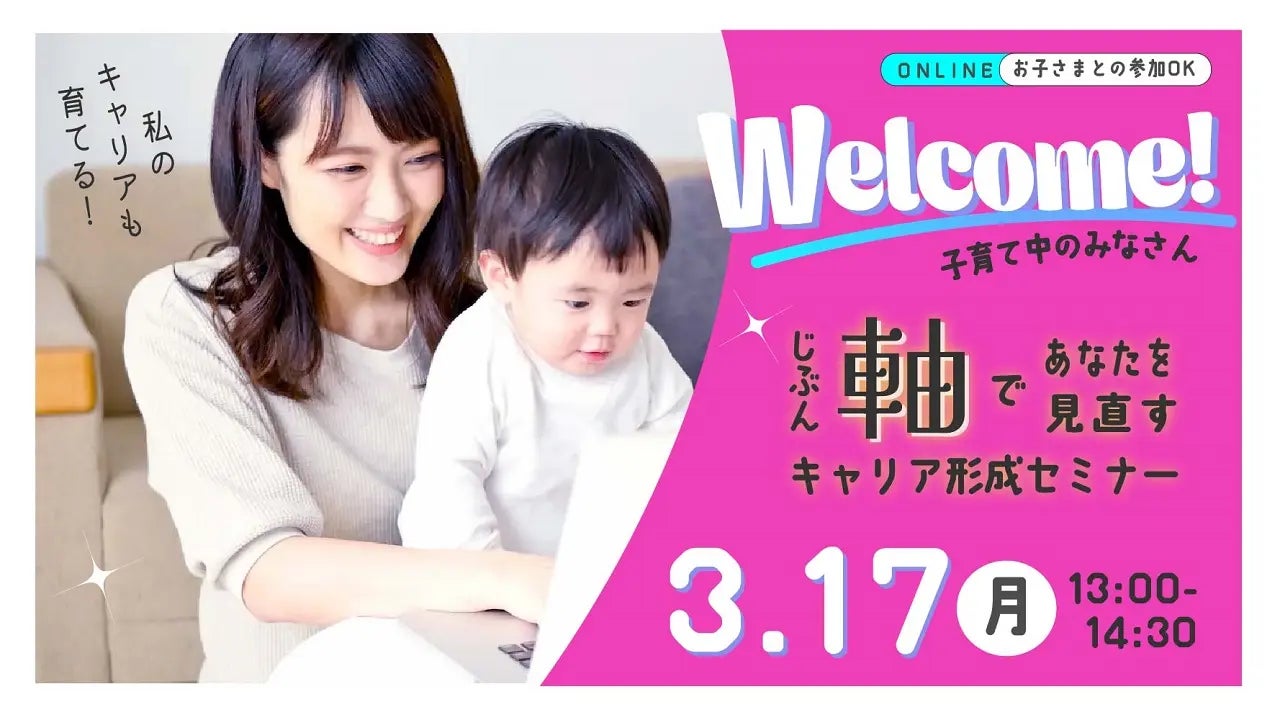 この度、育休前後もしくは子育て中は忙しく、自分のことを考える時間がなかなか取れない方に向けて、3月17日(月)に「自分らしさに気づくジョブ・カード活用セミナー」を実施します。(オンライン開催のため、全国どなたでも参加可能です!)
