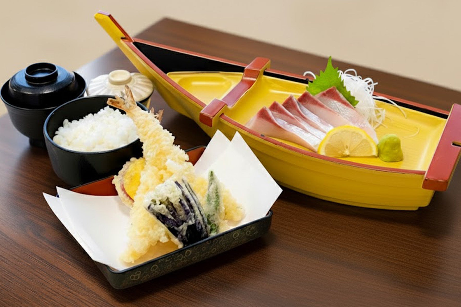 脂が乗り、身が引き締まった旬の寒ブリは、この時期でしか味わえない格別の美味。当店の料理人が厳選した寒ブリを、鮮度そのままにお刺身でお楽しみいただけます。 御膳には、ごはん、味噌汁、茶碗蒸し、そしてサクサクの天ぷらも付いたボリューム満点の内容で、冬の贅沢な昼食や夕食に最適です。