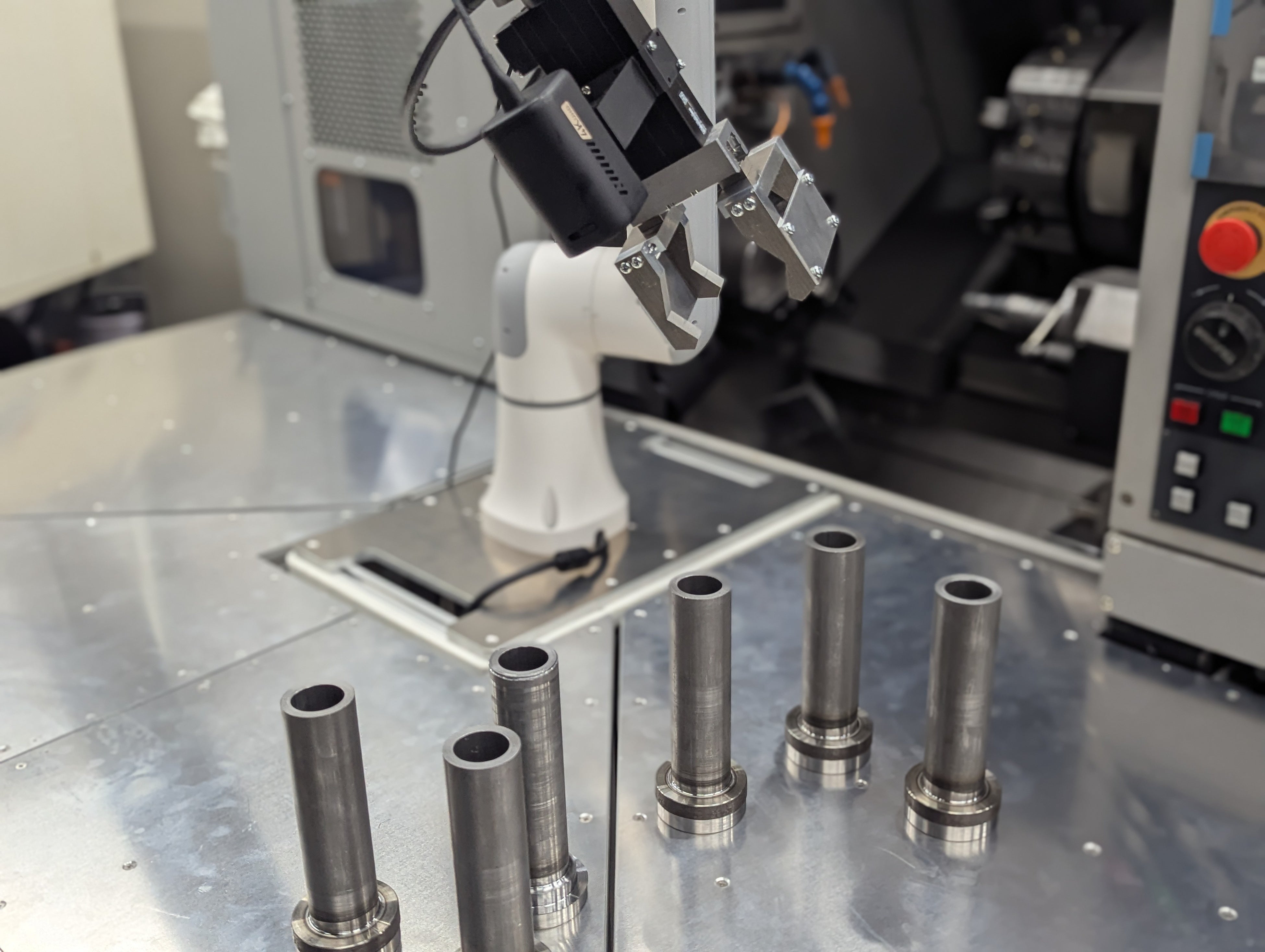 AIと協働ロボットによるNC旋盤へのワーク供給・取り出し自動運転