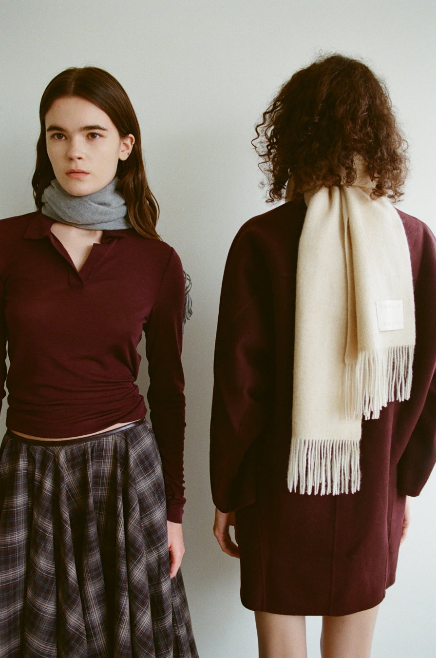 カシミヤ本来の柔らかさとしなやかな艶を活かしながら、表と裏で異なる色の表情を楽しめるリバーシブル仕様。巻き方ひとつで印象を変えられるデザインは、日常のスタイリングに静かな華を添えます。