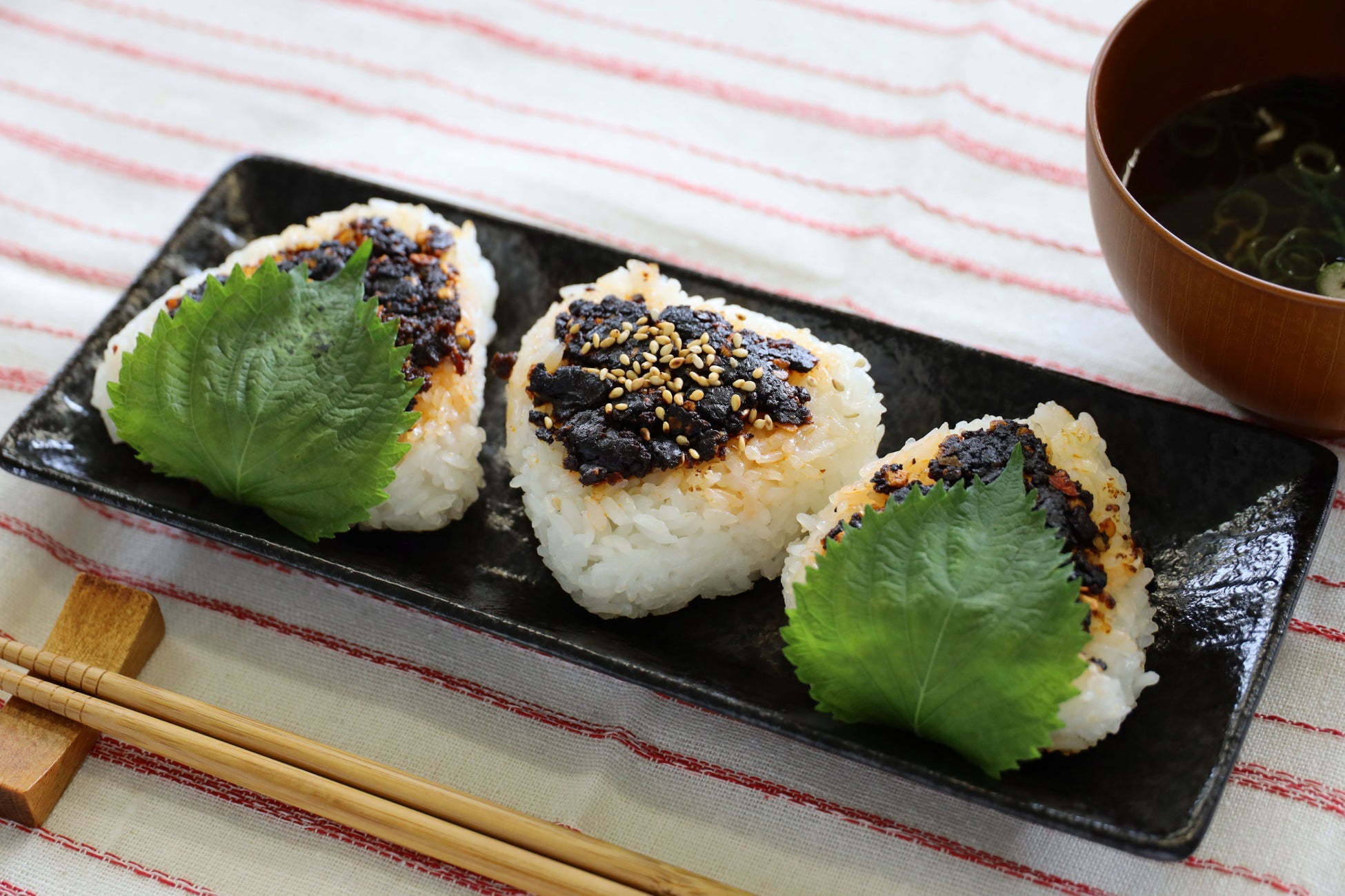 2.赤みそと食べるラー油を混ぜ合わせたものをおにぎりの表面にぬる