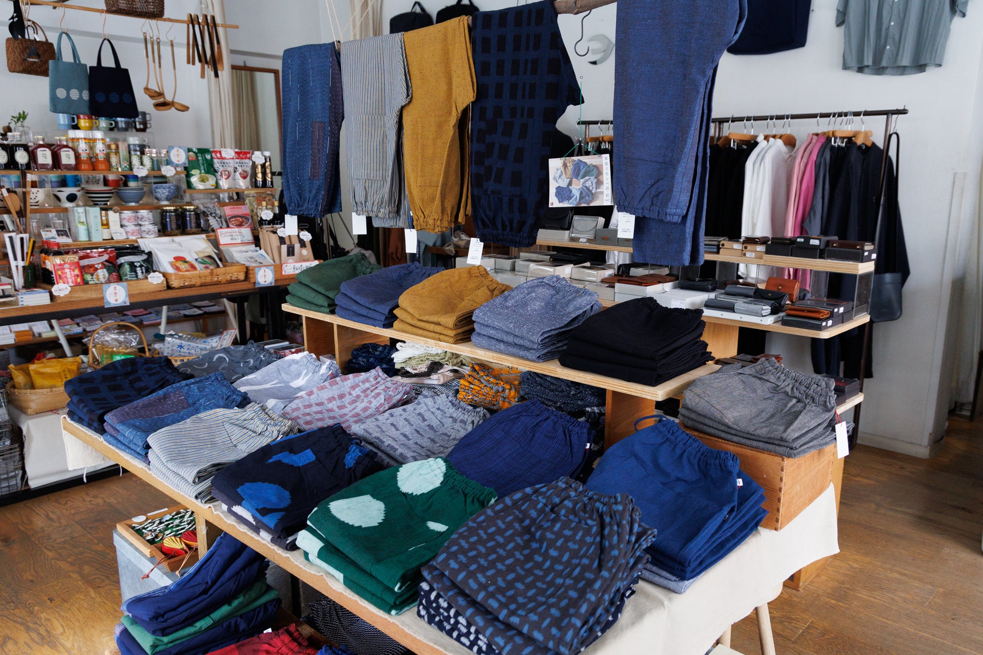 ファッションの多様化とともに、「どこで、どうつくられているか」に関心を持つ若い世代が増えています。うなぎの寝床は、“地域文化商社”として、文化工芸の一つである久留米絣を使ったMONPEを通して、筑後地方の技術を未来につなぐものづくりを展開しています。農作業着だったもんぺを現代の衣服へと再編集した「MONPE」は、着ることで地域文化を応援する一着でもあります。