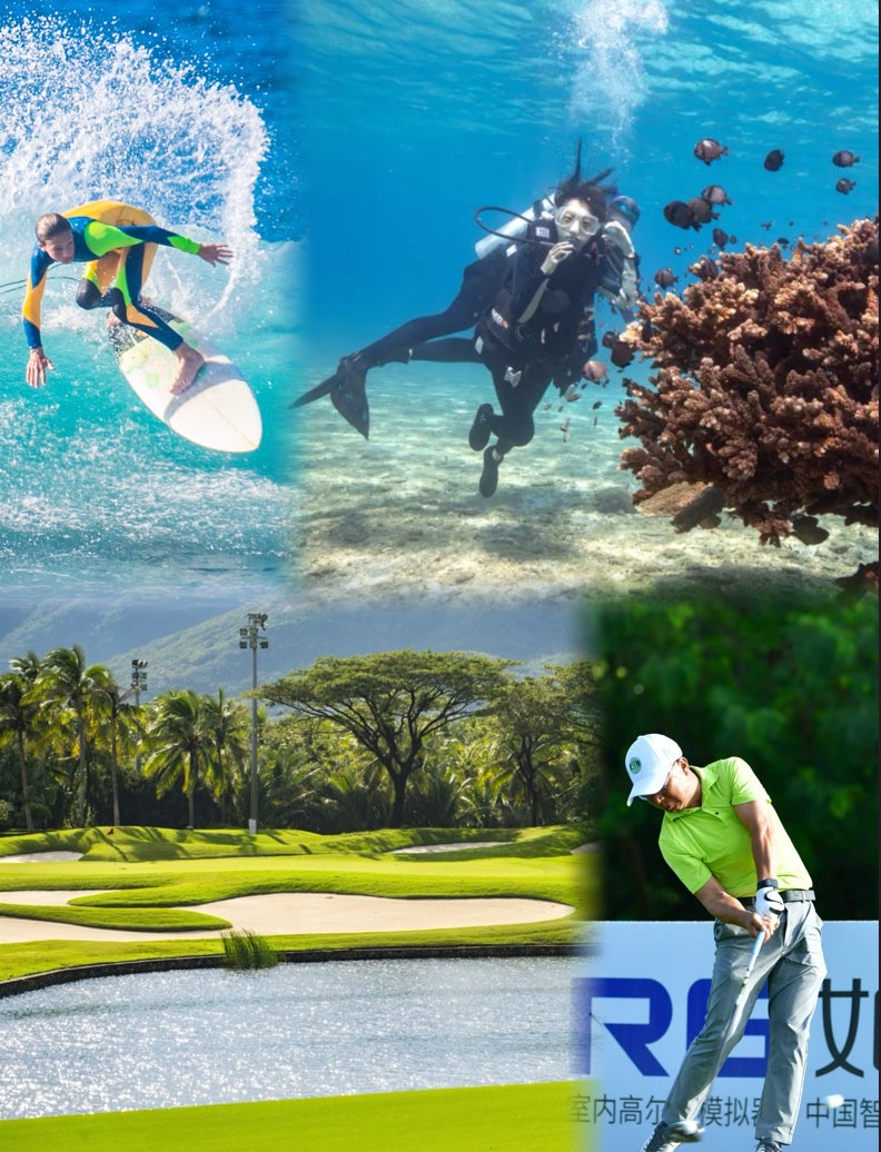 海南はアクティブな旅を好む人にも人気のエリア。日月湾は中国屈指のサーフスポットとして知られ、世界のサーファーが訪れるほど。さらに珊瑚礁の海ではダイビングやシュノーケリングも楽しめ、島内には国際規格のゴルフコースも点在。旅の楽しみ方は“海とともにある人生”そのものです。