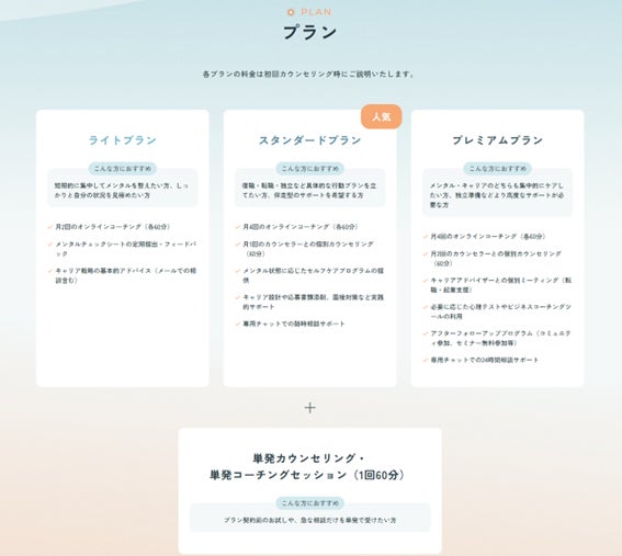 本提携により、退職がゴールではなく“再スタートの起点”となります。退職完了と同時に、臨床心理の知見とキャリアコーチングを組み合わせた当社プログラムへシームレスに接続し、利用者の『心』と『未来』の両方を同時に整えることが可能になります。