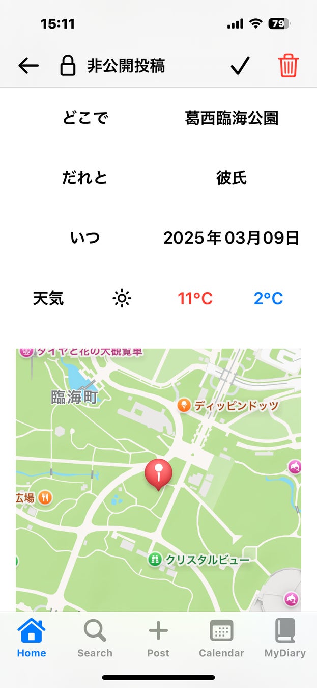 ほかのコーディネートアプリと異なる点は、今の自分の服装を写真に撮り「どこで」「だれと」GPSを用いた場所、メモや感想の登録してグルーピングできることです。
