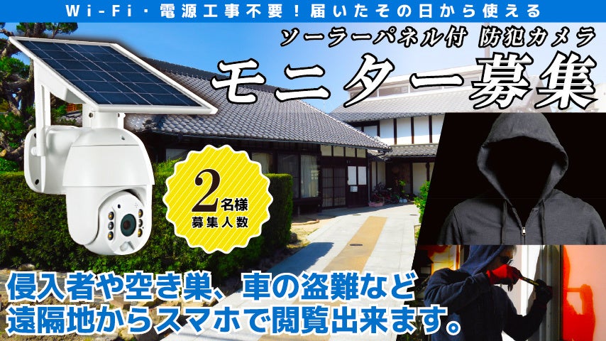 設置場所を選ばない自由な防犯対策:Wi-Fi・電源工事不要のソーラーパネル付SIM対応防犯カメラモニター募集