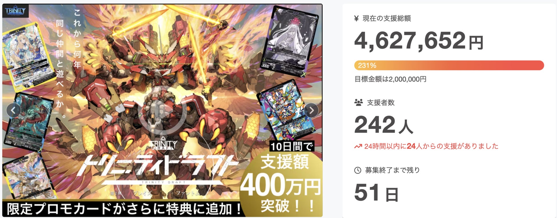 新作カードゲーム『トリニティドラフト』10日でクラウドファンディング支援額400万円を突破!