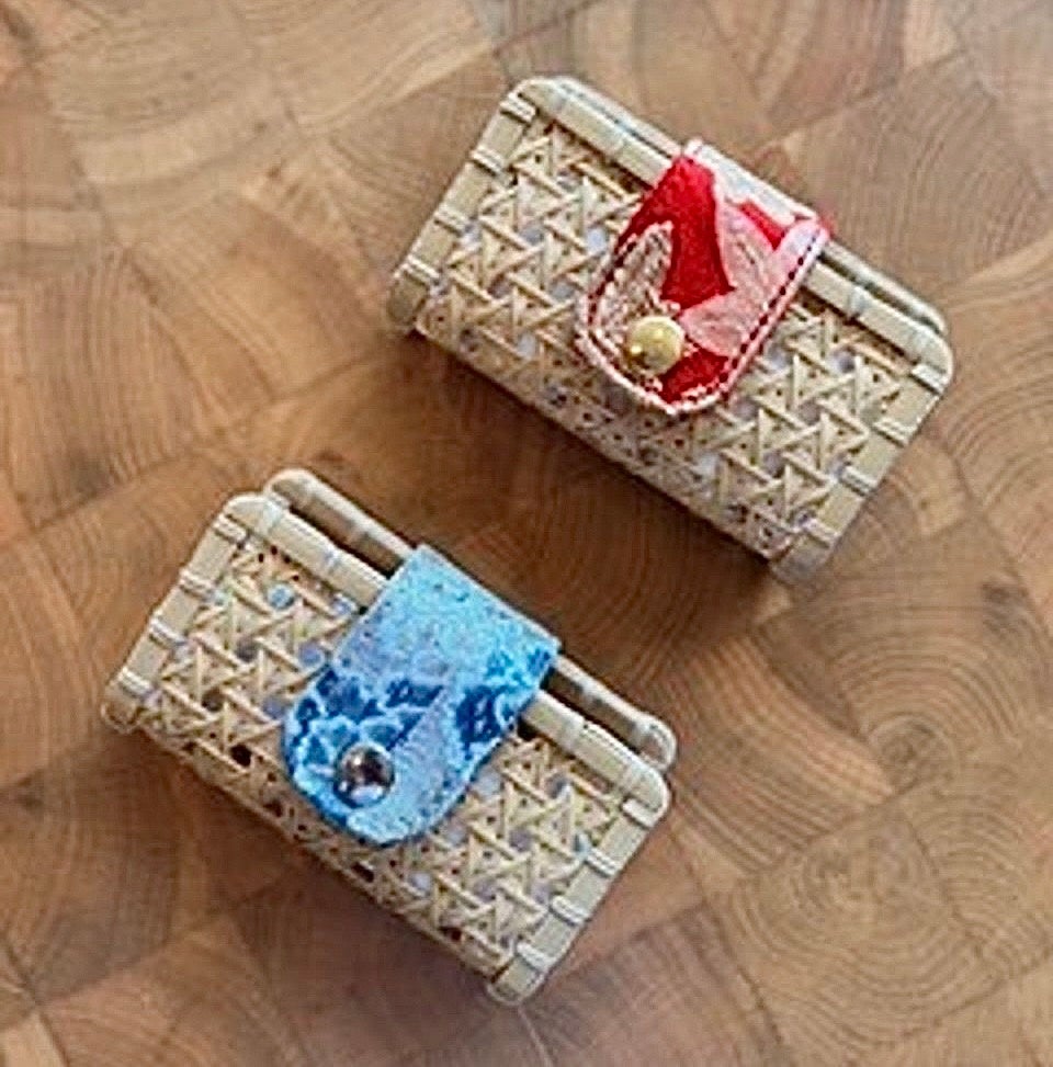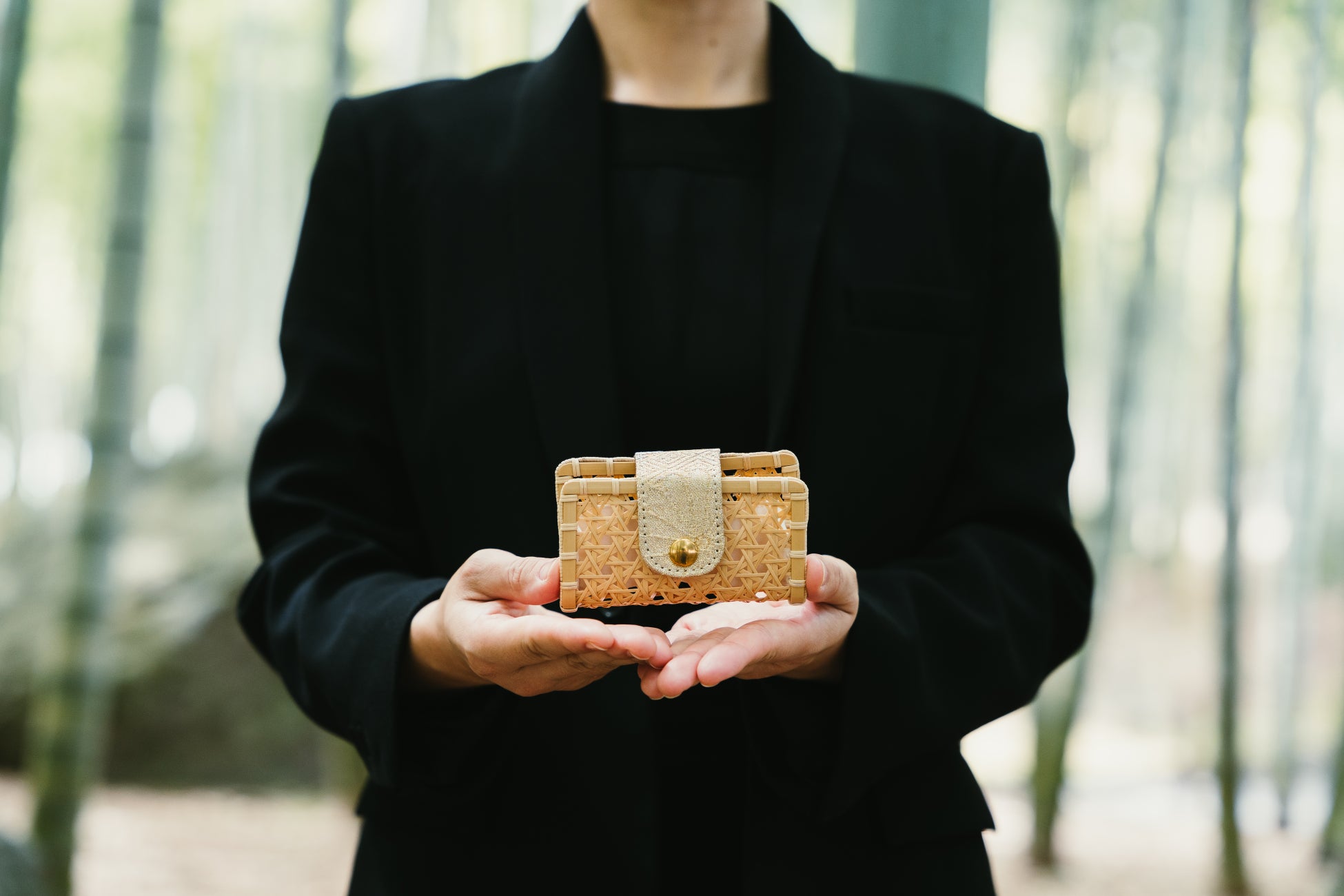別府市竹細工伝統産業会館の館長でもある竹細工職人の宮坂氏が製作した名刺入れを使っている方を見て、紹介を取り次いでいただき、「DAIDAI」とのコラボレーションが実現した。