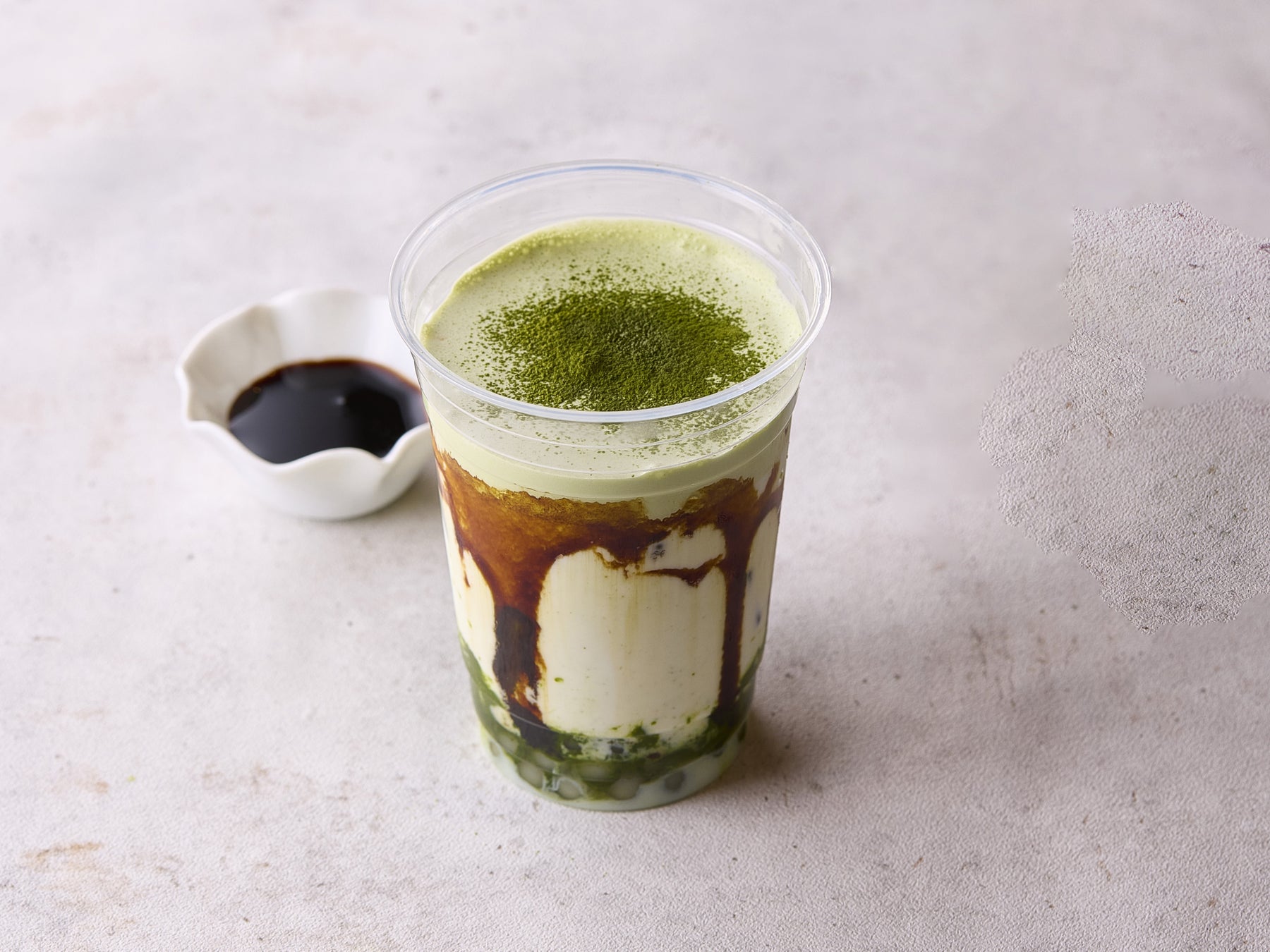 蔵出し宇治抹茶にミルクを合わせ、上にはふんわりとしたミルクフォームをのせた3層仕立てのドリンクです。宇治抹茶のほどよい苦みを残しつつ、練乳と黒蜜でまろやかに甘く仕上げています。もちもちの白玉も入っていて、甘いもの好きにはたまらない一杯。仕上げに抹茶パウダーをふりかけて、宇治抹茶の香りと風味もしっかり愉しめます。