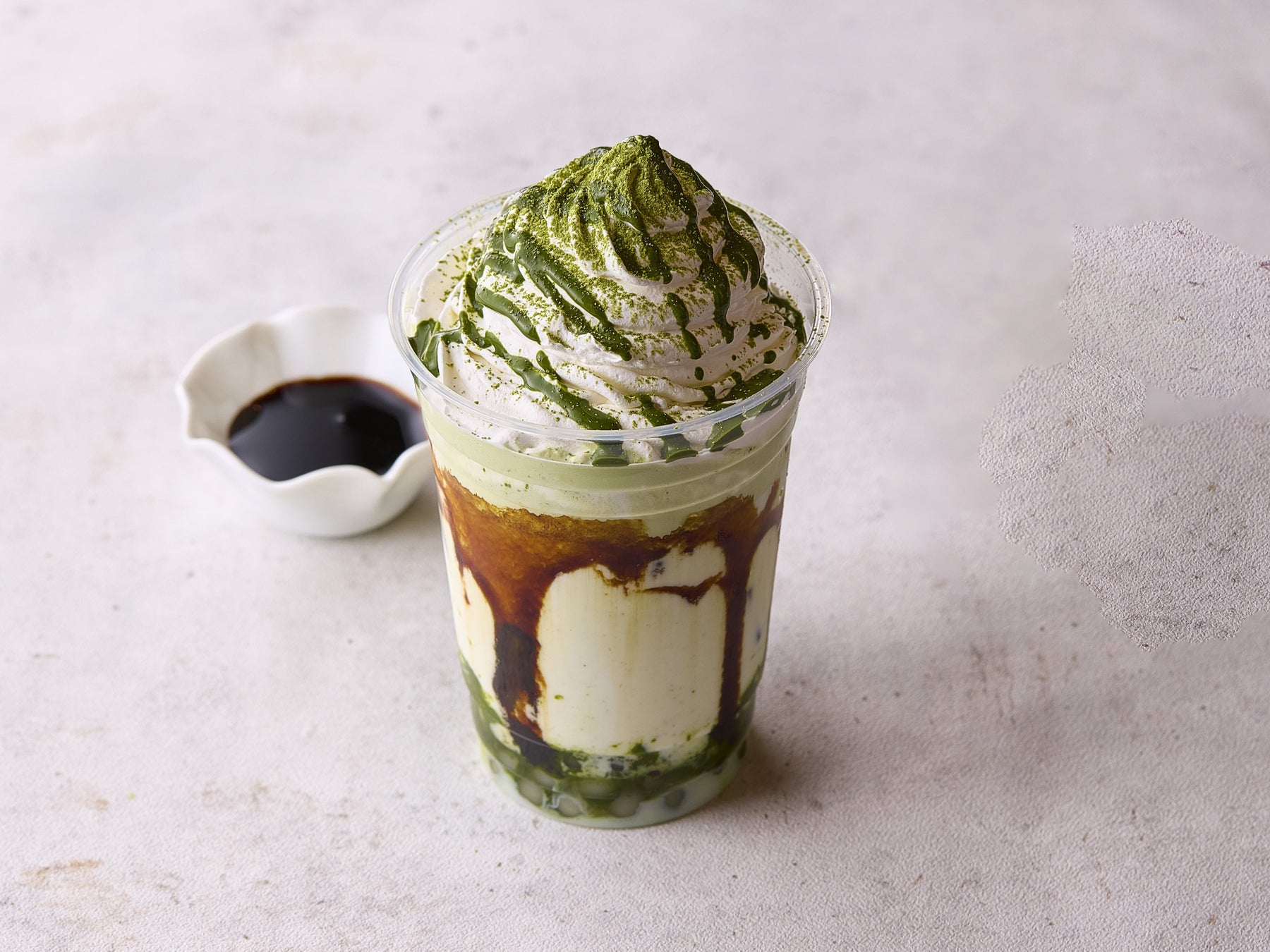 『抹茶ラテ』に、たっぷりのホイップクリームをのせ、さらに抹茶ソースとパウダーをかけた贅沢なドリンクです。抹茶ソースとパウダーが織りなすほろ苦さは、抹茶ラテとホイップクリームの甘さと相性抜群。デザートのような満足感があり、食後にもぴったりです。