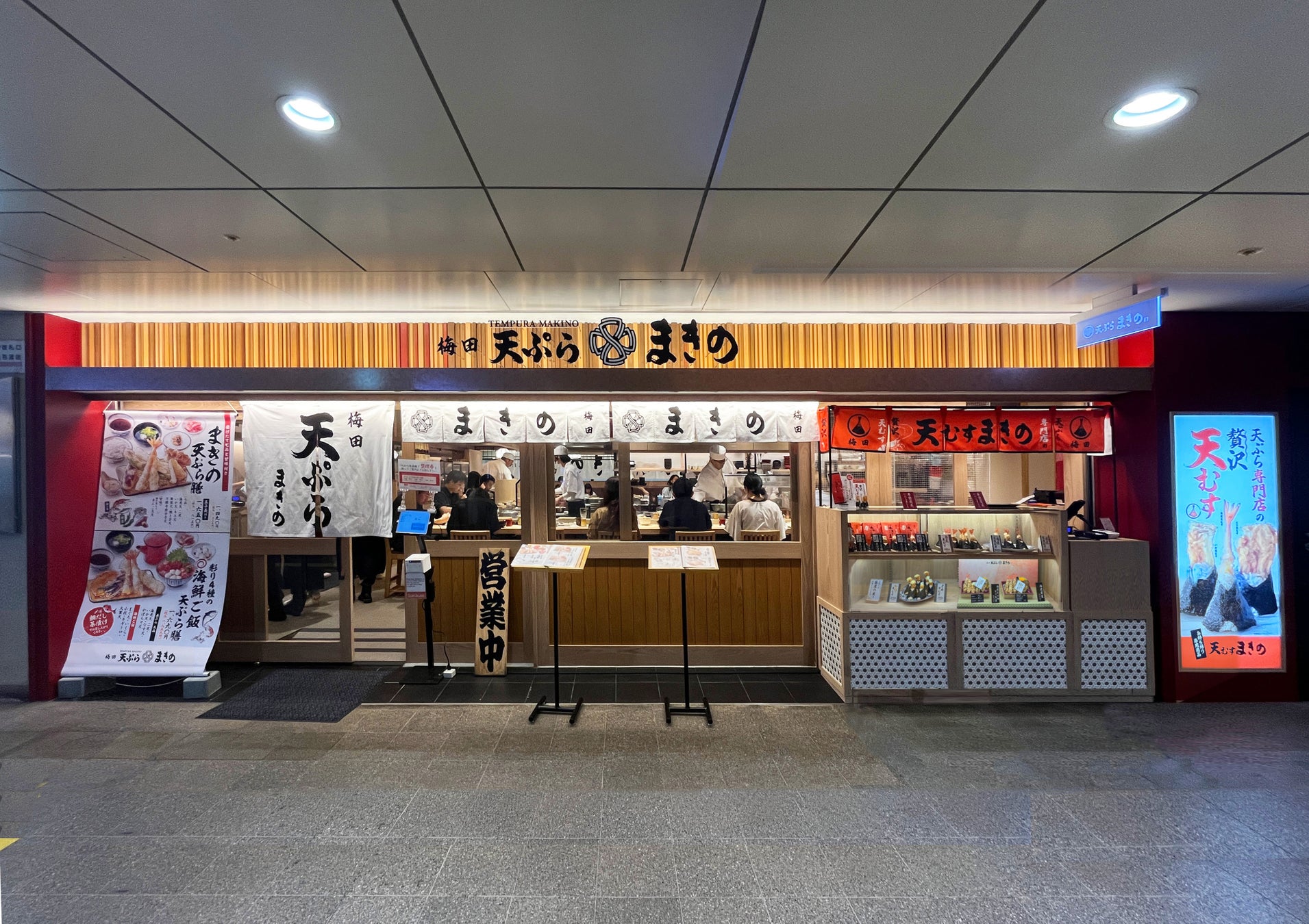 「天ぷらまきの」とは、旬の魚介や野菜、鶏などさまざまな天ぷらを、揚げたて都度出しでご提供する天ぷら専門店です。お食事の進み具合をみながら、一品一品に対し丁重な天ぷら職人たちの技術で、最高においしい天ぷらを最適なタイミングで、リーズナブルにご提供します。梅田店では、店舗限定の天ぷらや、海鮮ご飯とのセットメニューなど贅沢な「膳」を販売しており、“天ぷら”の日常のお食事シーンを広げられる、ここだけの商品やサービスを展開しています。平日、休日問わず行列ができ、最大2時間お並びいただく(※2025年5月時点)ほど連日多くのお客さまにご来店いただいています。