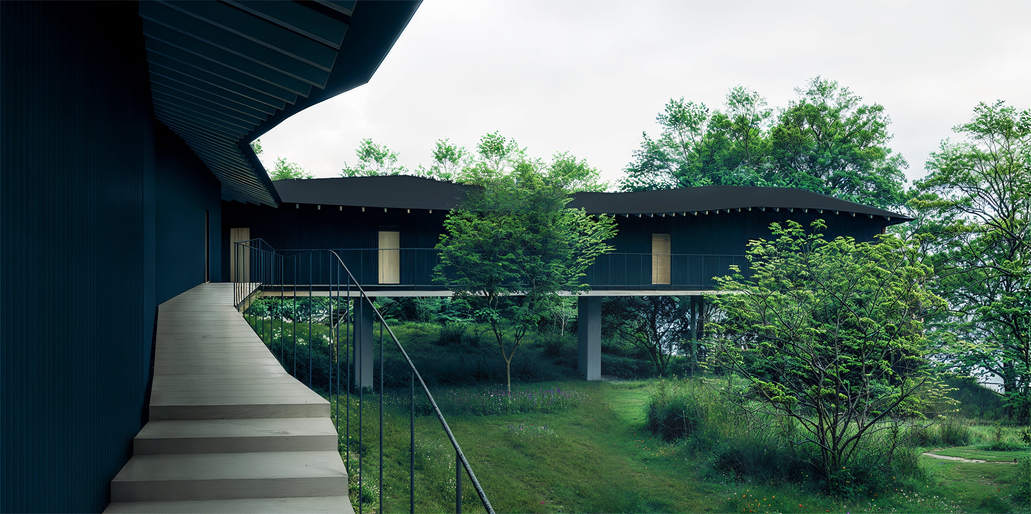 「森の一部であるかのように感じられる場所を作りたい—自然と穏やかに共存し、人々がゆっくりと時間を過ごすことができる建物」と妹島和世氏は述べています。「日常から離れた静かな空間を提供し、建築が人と人とのつながりを創出したり、自身と向き合う場所になることを目指しています。」