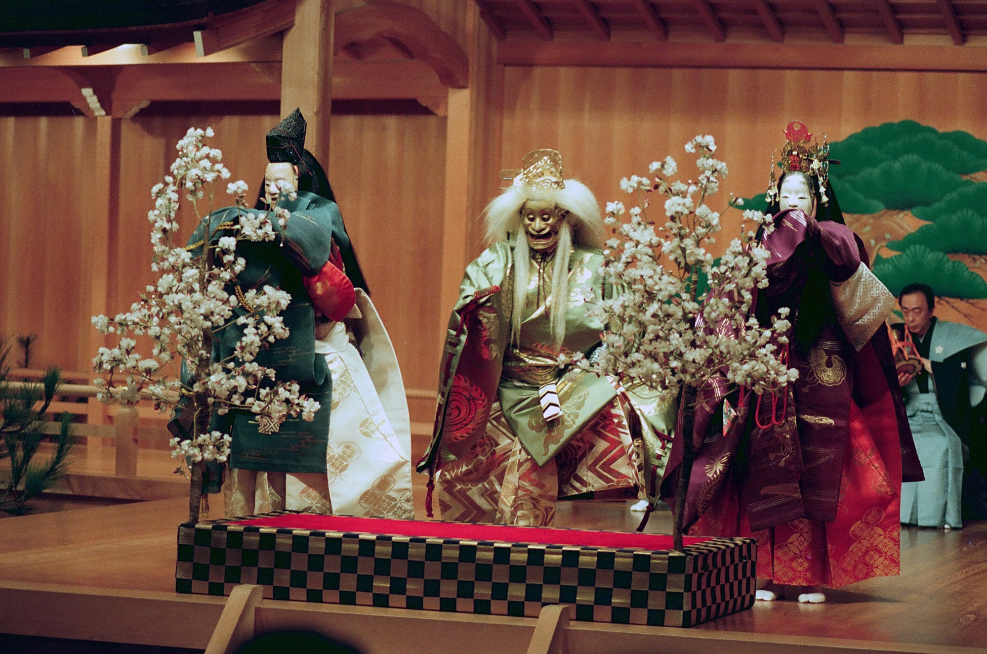 銀座の中心 観世能楽堂にて、お花見にちなんだ能「嵐山 白頭」のほか宗家所蔵の能面・装束の展示や能面体験、ワークショップをお楽しみいただけます。