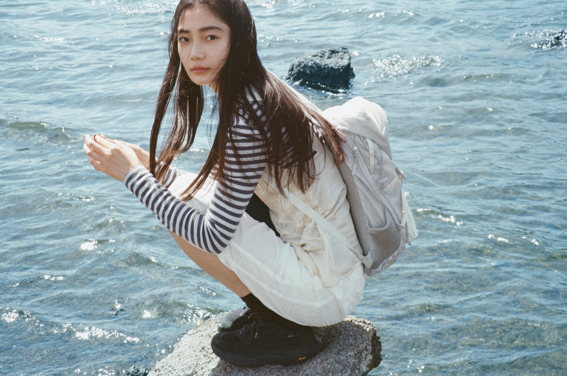 今回発売される「minitmute sporty」ラインはこのようなブランドの拘りをもとに、日常の中から「旅の感覚」を軽くて柔軟に表現できるように企画されました。また、日本で撮影されたルックブックは様々な瞬間に自然に染み込む「軽さ」を感覚的に表現しています。