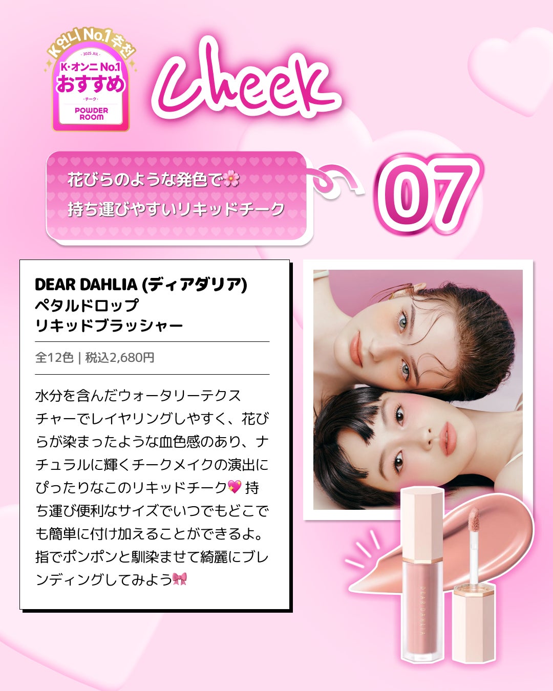 韓国最大級のビューティープラットフォーム「パウダールーム(POWDER ROOM)」が、日本市場向けに毎月発信している人気コンテンツ 『Kオンニおすすめ』 の2025年7月号が公開されました。