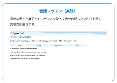 後半10分の会話パートでは、身に着けた内容を発展させた実践的な会話で応用力を実感できます。