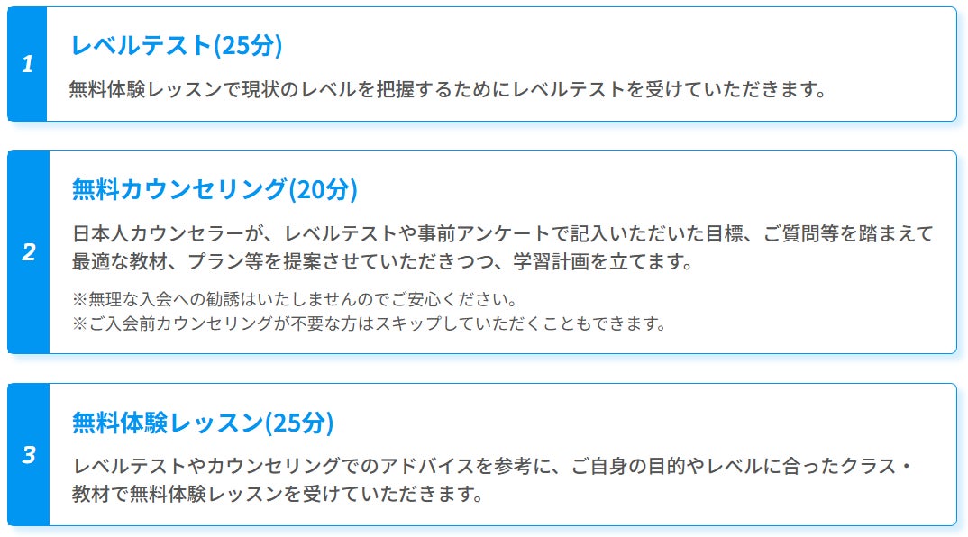 4. 無料体験レッスン2回+日本人による無料カウンセリング