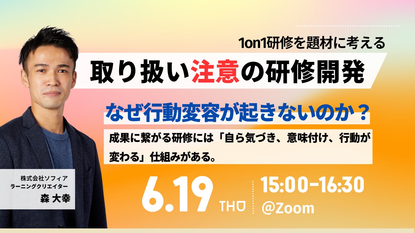株式会社ソフィア(東京都港区麻布十番、代表取締役:廣田 拓也、以下ソフィア)は【取り扱い注意の研修開発】「なぜ行動変容が起きないのか?」と題し、無料セミナーを開催します。
