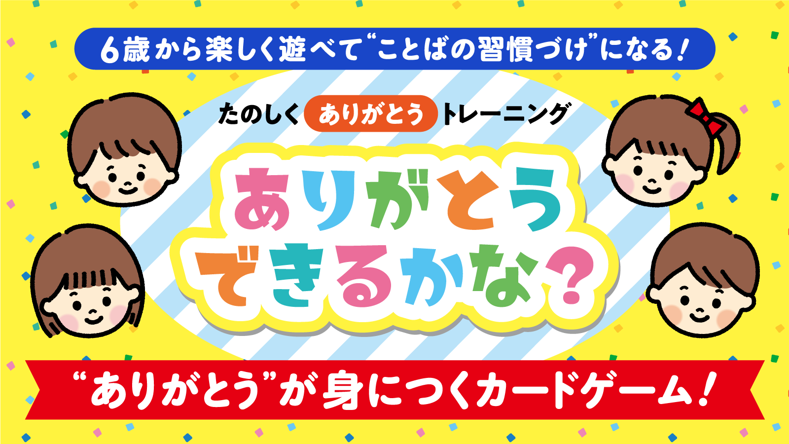 『ありがとうできるかな?』は、「ありがとう」をたくさん“言う・聞く”ことをテーマにした教育・コミュニケーション型カードゲームです。