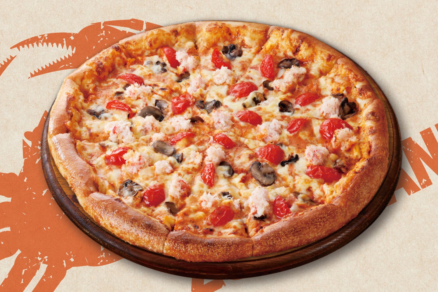 ズワイガニ、マッシュルーム、チェリートマト、プレミアムチーズブレンド、エキストラチーズ、トマトクリーム ※トマトクリームにはオニオン含む