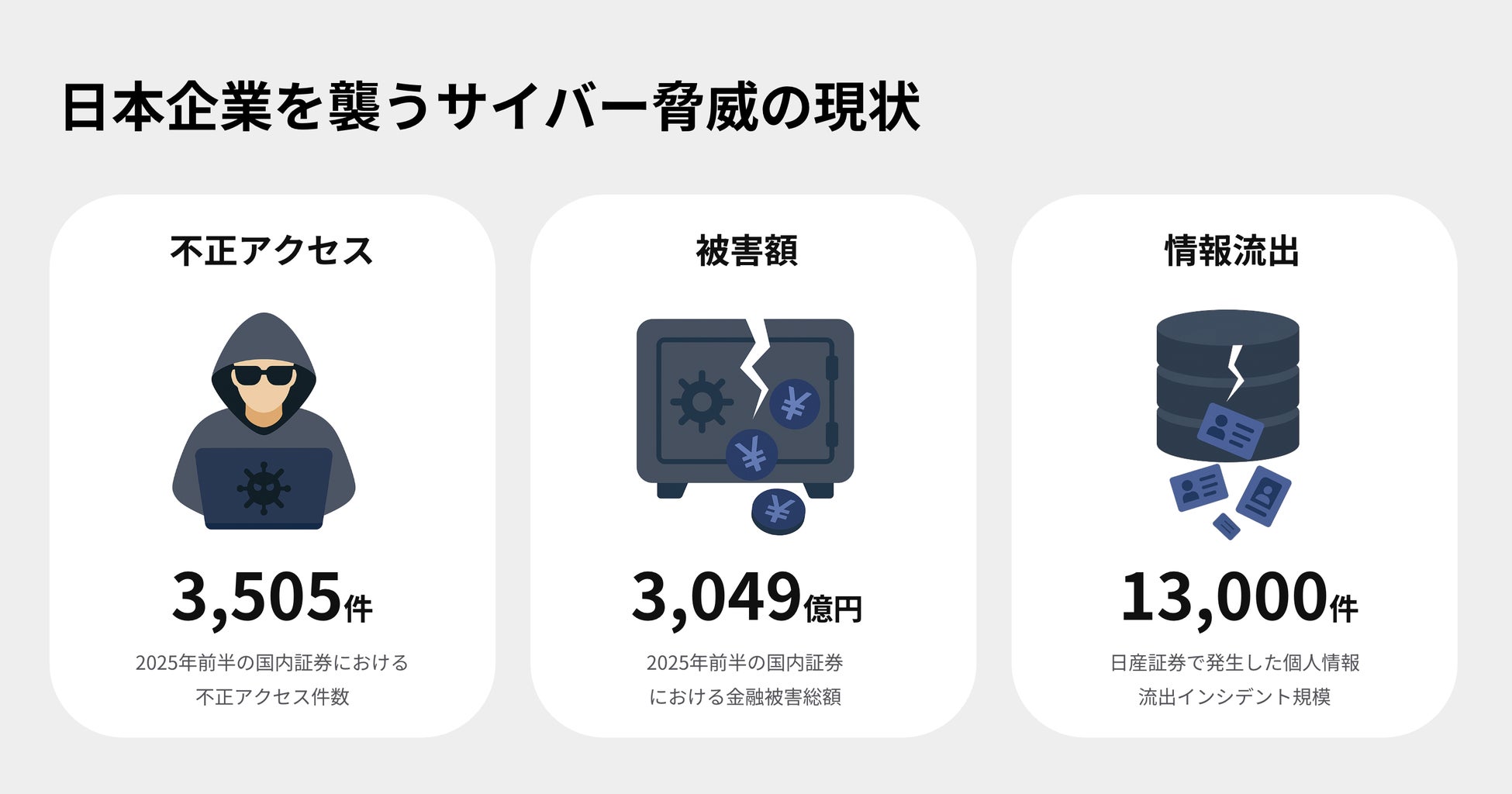 近年、サイバー攻撃の手口は巧妙化し、委託先や取引先を経由した「サプライチェーン攻撃」、社員アカウントの漏洩を悪用した「不正アクセス」など、企業が気づかないまま被害に遭うリスクが増大しています。