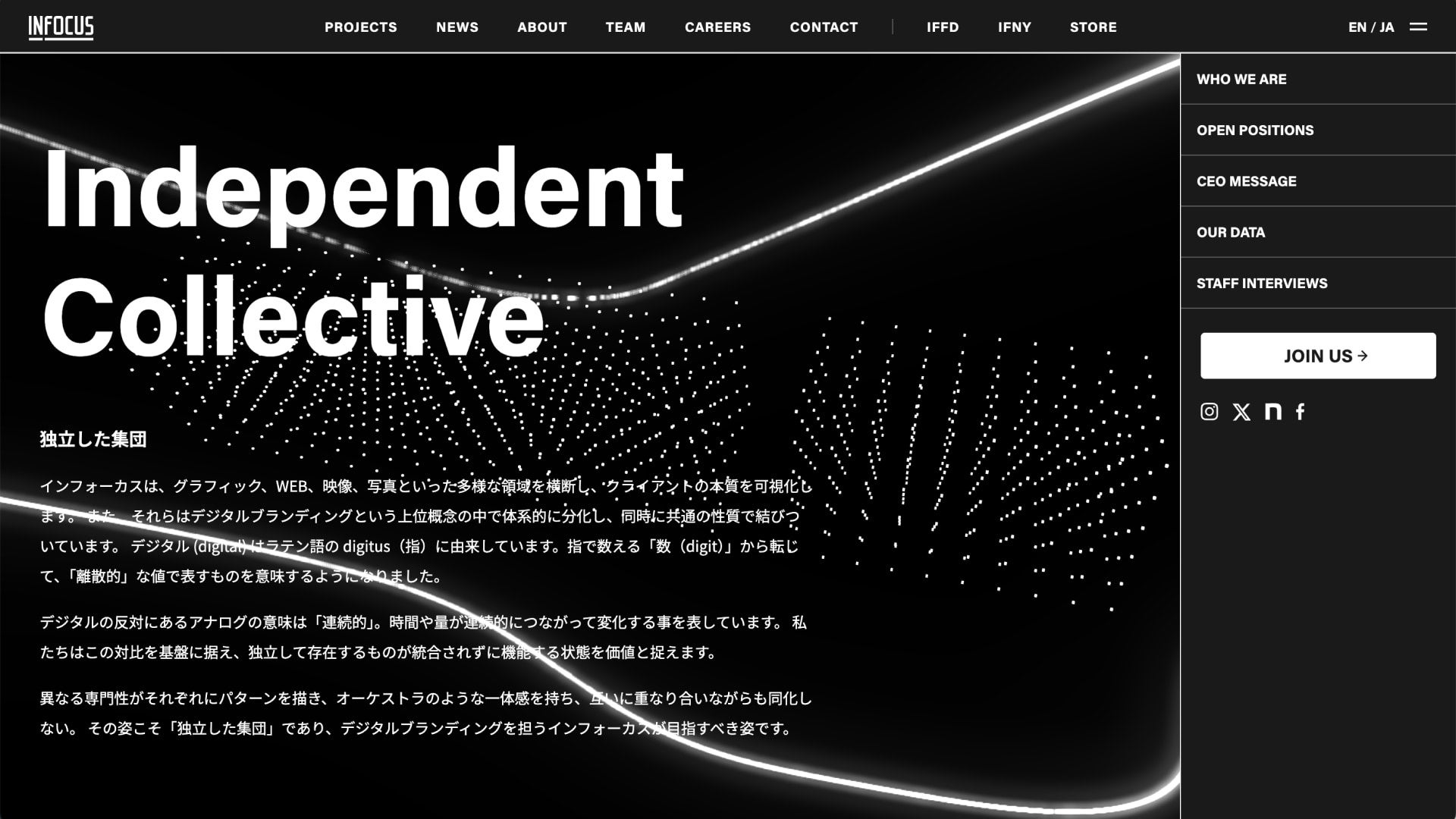 東京とニューヨークを拠点に活動するデジタルブランディングスタジオのIN FOCUS(インフォーカス)が7年ぶりにコーポレートサイトをリニューアル